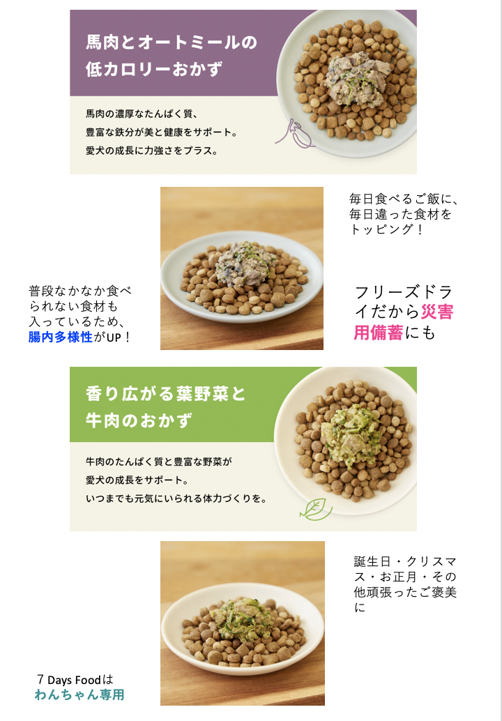 わんちゃん専用のフリーズドライトッピングで(7Daysfood)です。