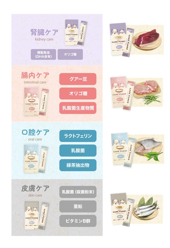ちゅ〜るは、体調やお悩みに配慮したラインナップになっており、