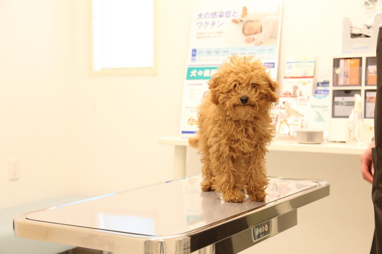 1ヶ月前はシャンプーだけ行いましたが、今回は2回目のカット。1回目のトリミングデビューも当院で行った子です。二本脚で立つのがとっても上手な子です😆