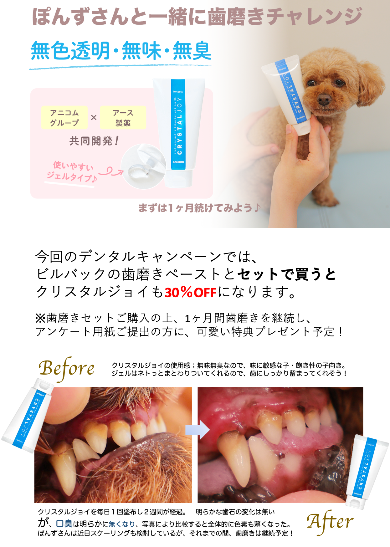 今年新たに登場したアニコムさんの歯磨きジェル“クリスタルジョイ”をお得にゲットできる企画もご用意いたしました!